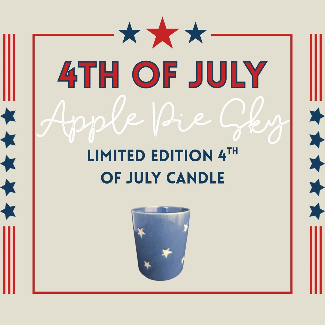 Tags: 4th of July candle, apple pie candle, patriotic candle, limited edition summer candle, blue star jar candle, handmade candles USA, festive holiday candle